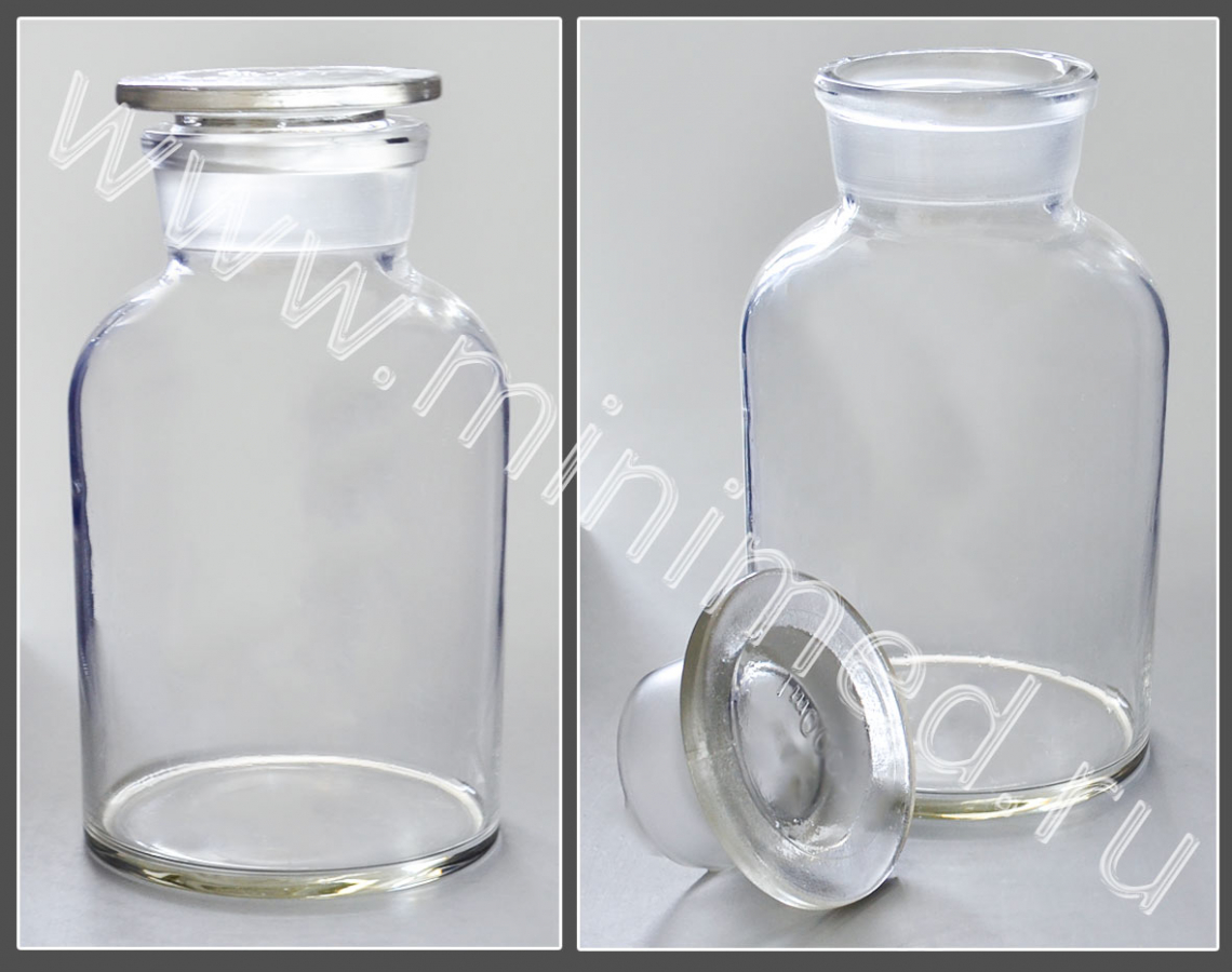 Склянка лабораторная 500 мл из светлого стекла с широкой горловиной и притертой пробкой, уп.6 /48 шт