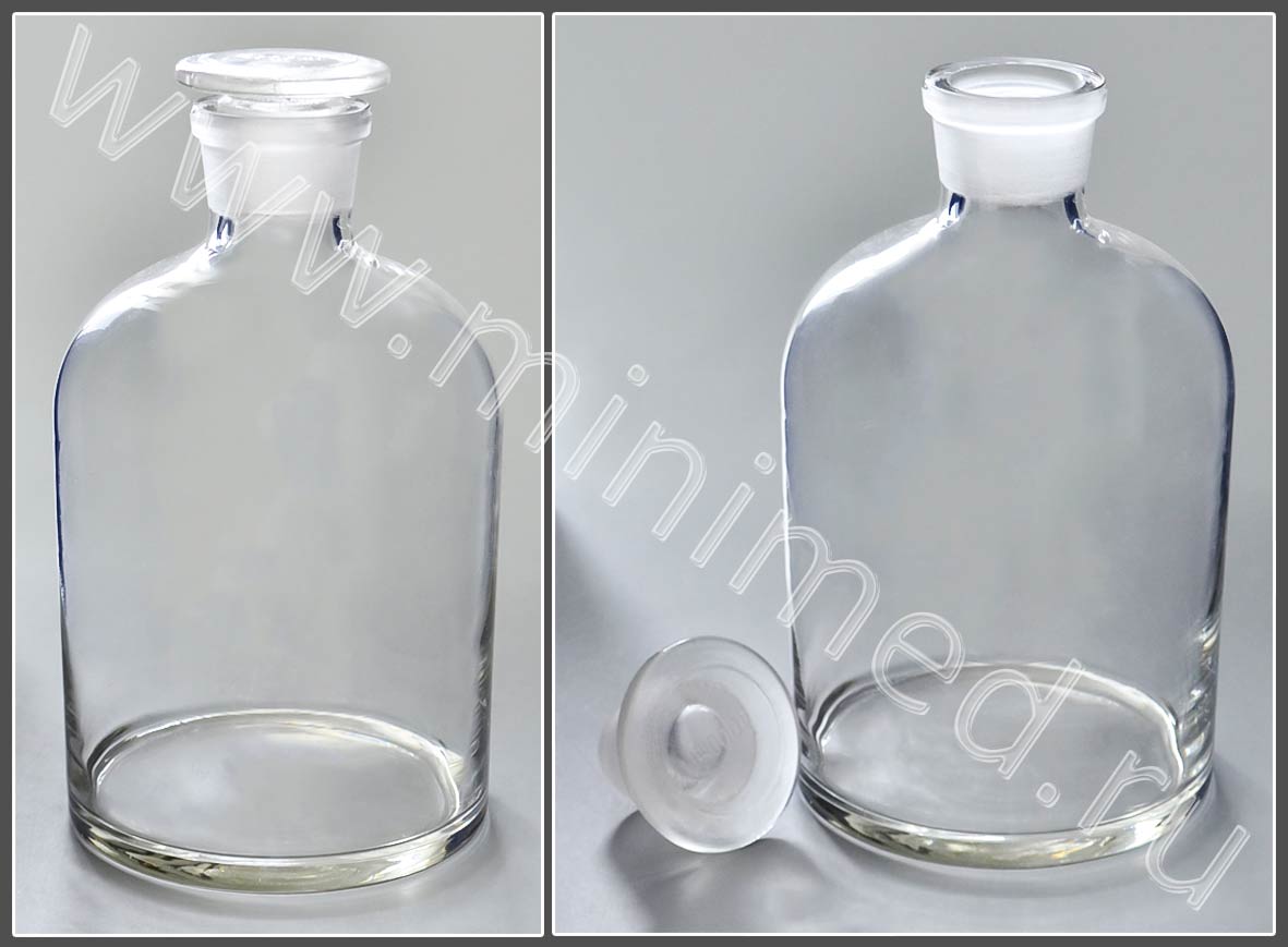 Склянка лабораторная 1000 мл из светлого стекла с узкой горловиной и притертой пробкой, уп.6 /24 шт