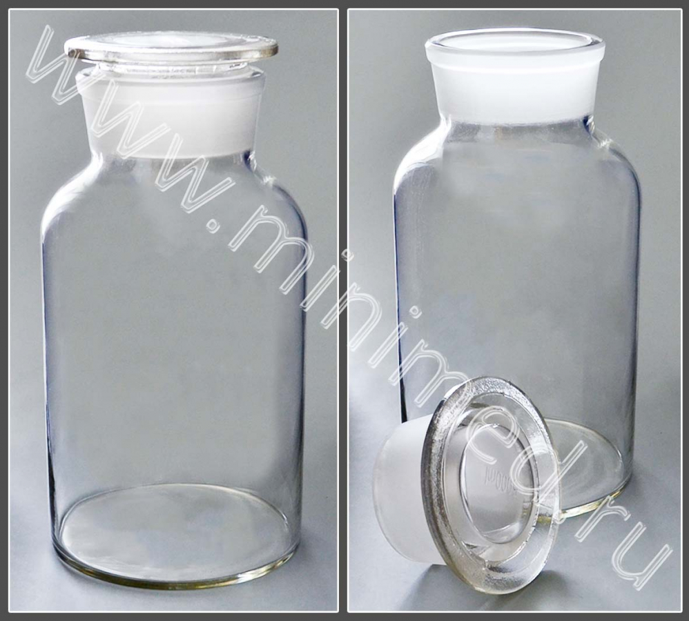Склянка лабораторная 5000 мл из светлого стекла с широкой горловиной и притертой пробкой, уп.1/6 шт