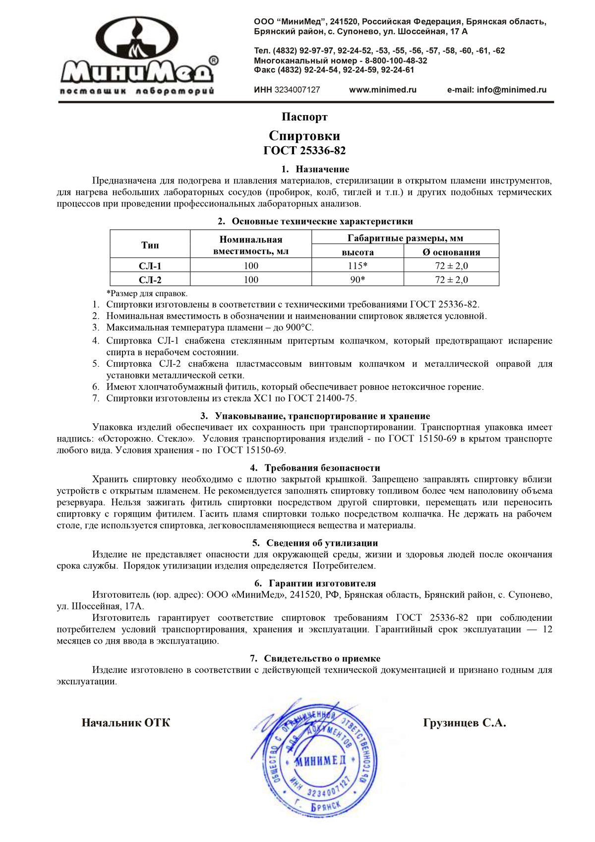 Изготовлена в соответствии с техническими требованиями ГОСТ 25336-82.