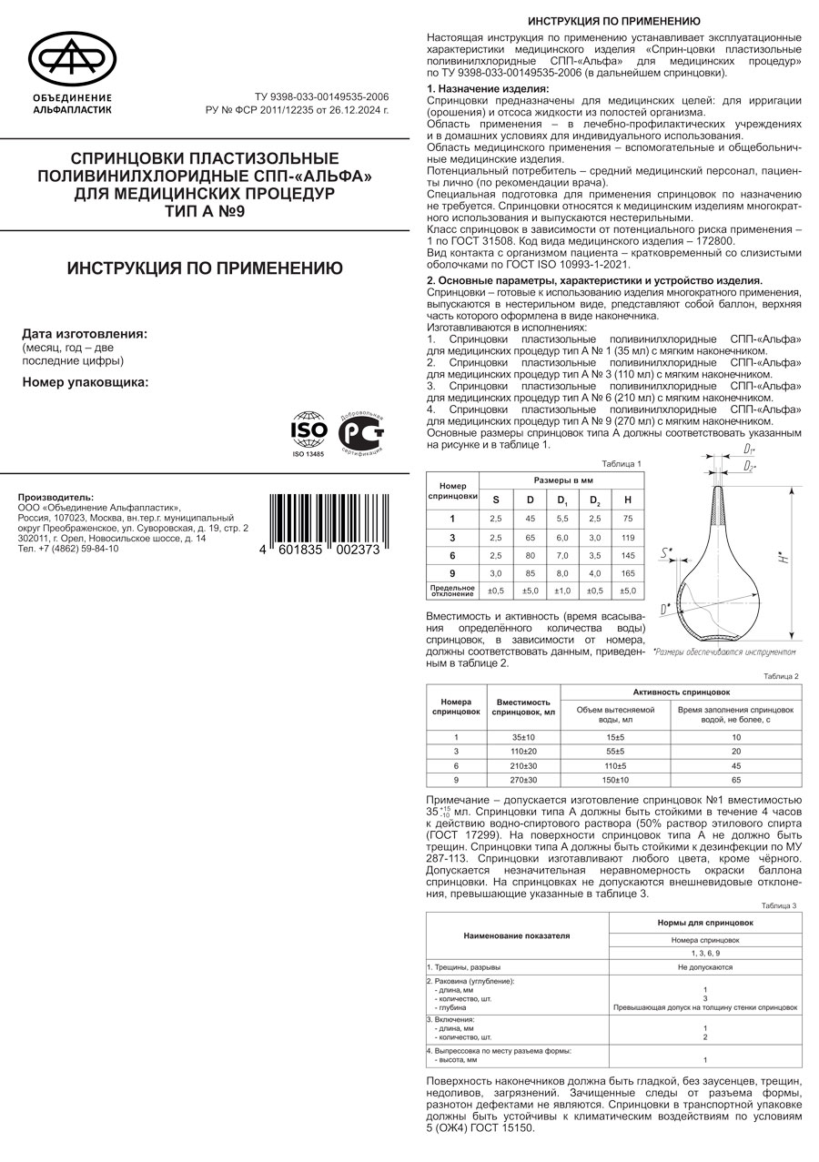 - Спринцовка ПВХ СПП-Альфа тип А № 9. Инструкция по применению-2