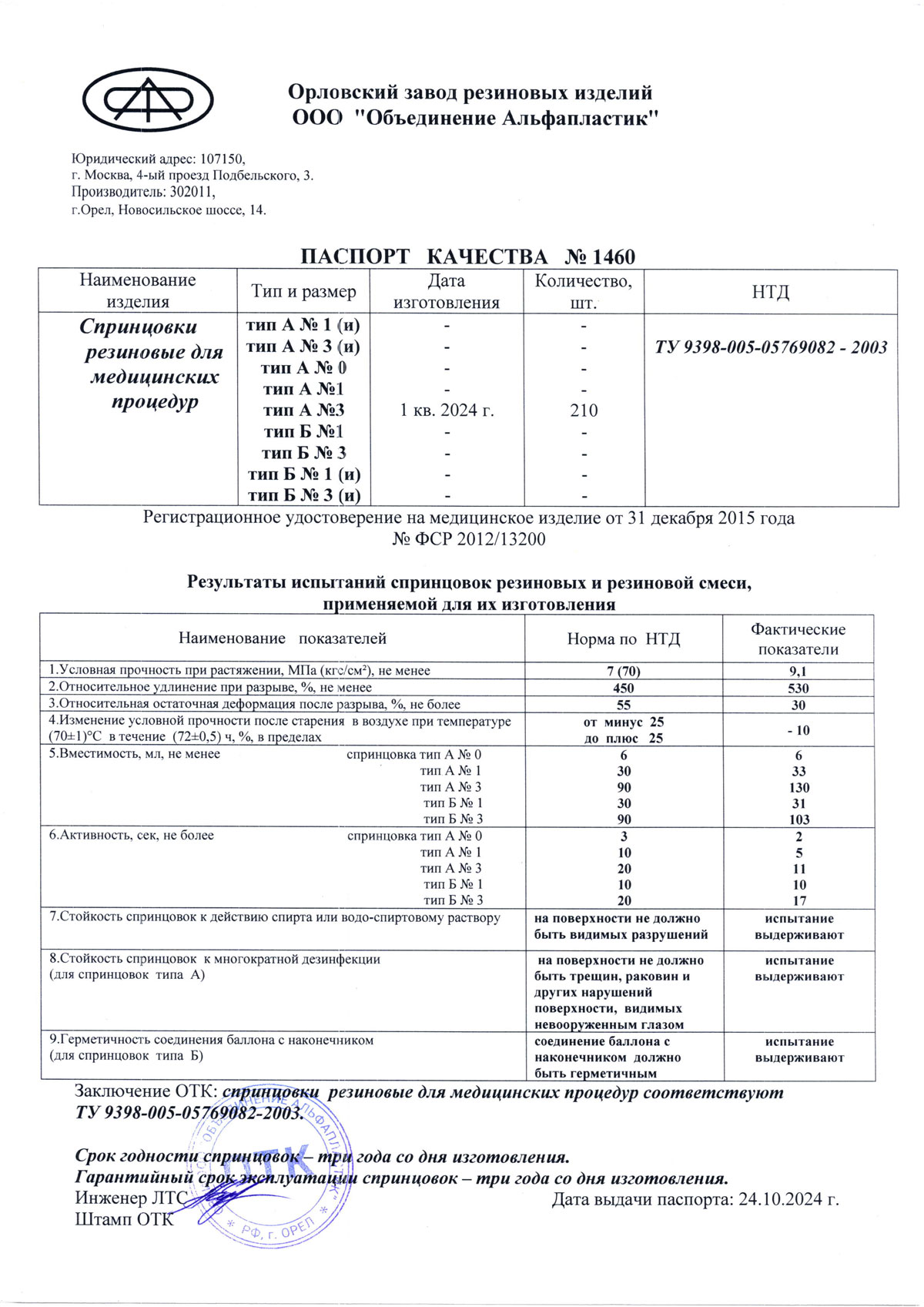 - Спринцовки резиновые для медицинских процедур. Альфапластик. Сертификат до 02.10