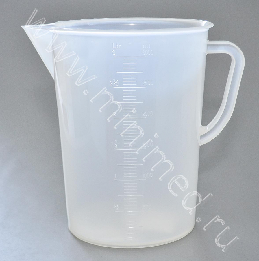 Стакан 3000 мл с носиком и ручкой градуированный, п/п, уп.1/60 шт