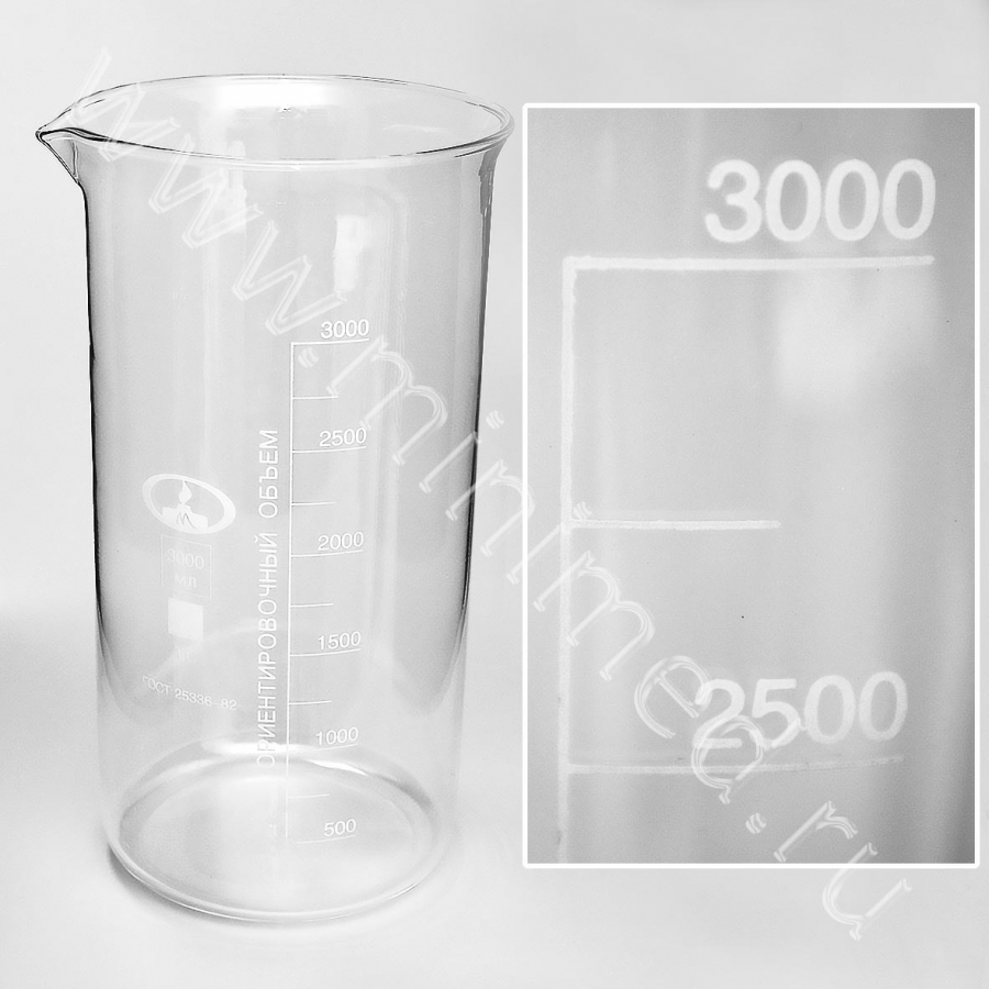 Стакан В-1-3000 ТУ 9464-019-29508133-2015 с делением, ТС, МиниМед, уп.1шт/кор.6 шт