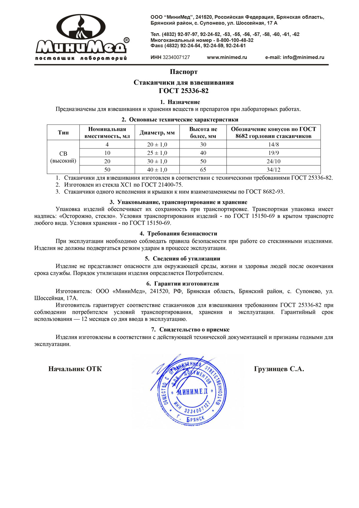 Изготовлен в соответствии с техническими требованиями ГОСТ 25336-82.