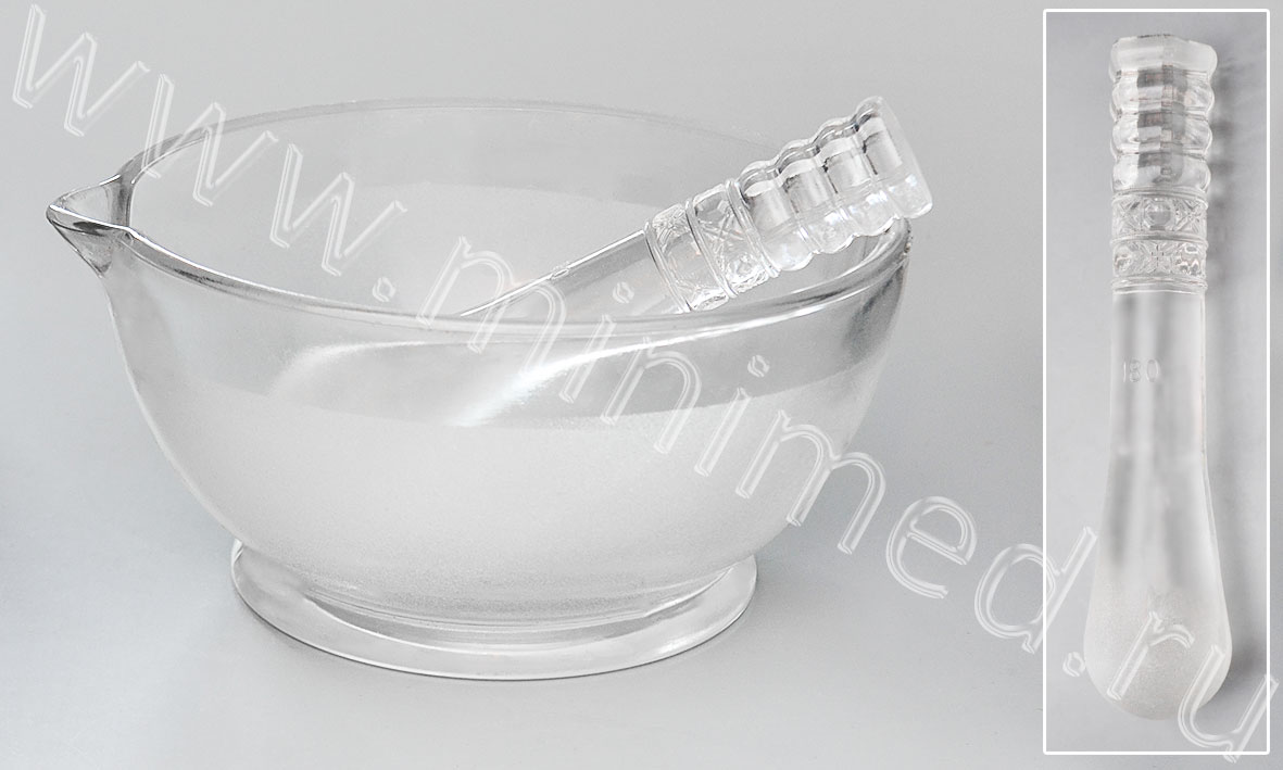 Предназначена для приготовления порошковых смесей. Для более эффективного растирания внутренняя поверхность ступки и шаровая поверхность пестика шероховатые. Изготовлена из химико-лаборатоного стекла.