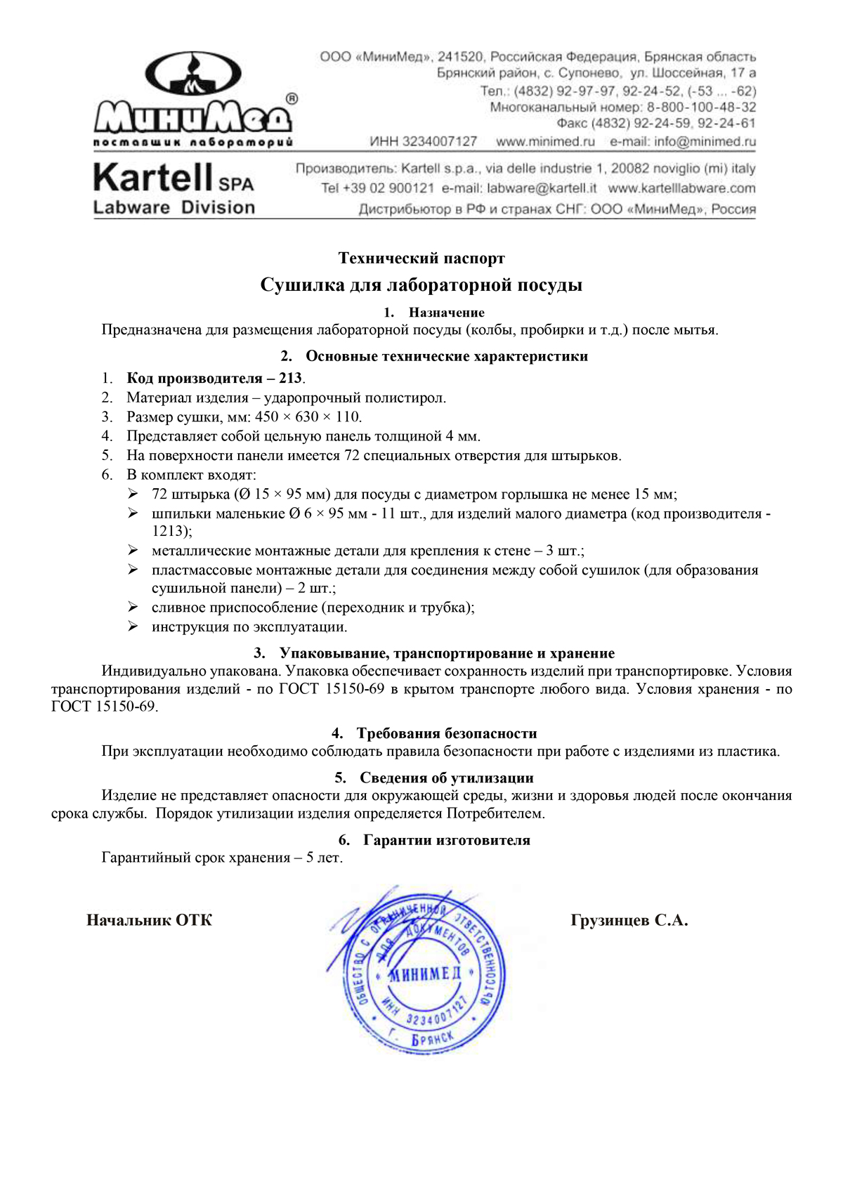 - инструкция по эксплуатации.