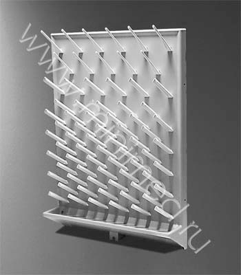 Представляет собой цельную панель из ударопрочного полистирола толщиной 4 мм. На поверхности панели имеются специальные отверстия для штырьков. Данная сушилка используется для работы со всеми типами лабораторной посуды.
