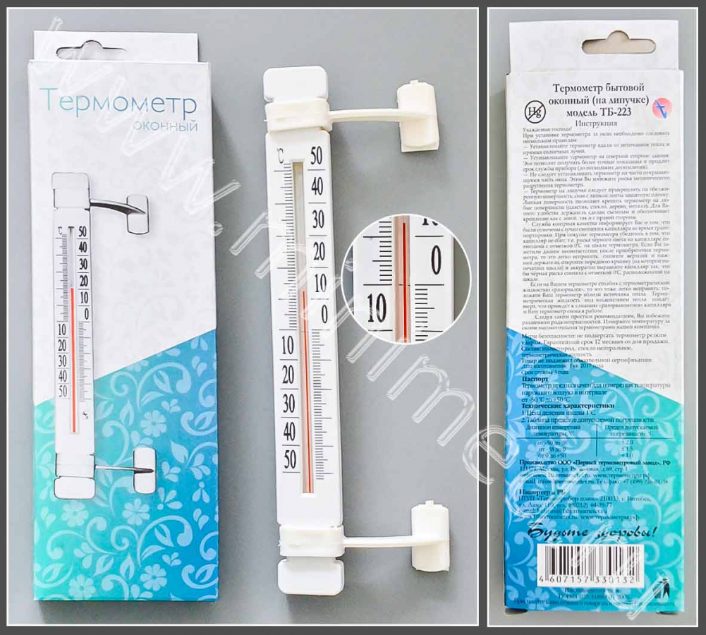 Термометр оконный "Липучка" ТБ-223 (-50+50С)