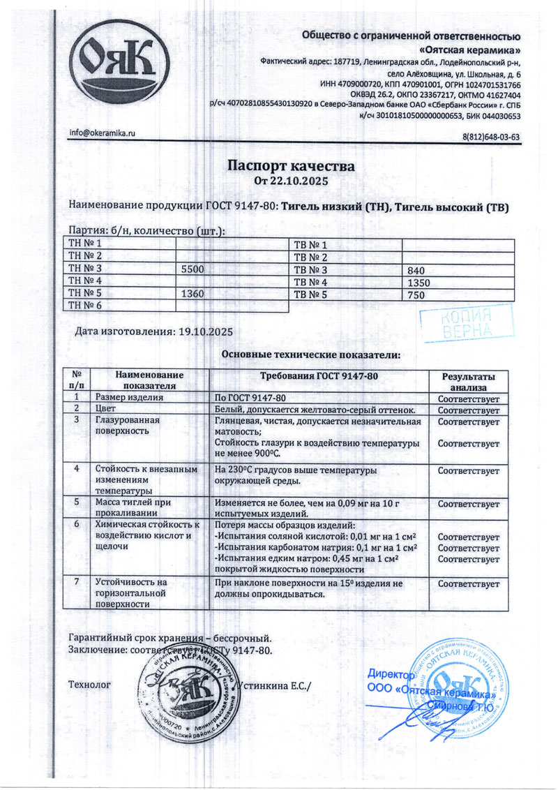 - Посуда лабор. фарфоровая. Оятская керамика. Сертификат до 13.11.2027-1