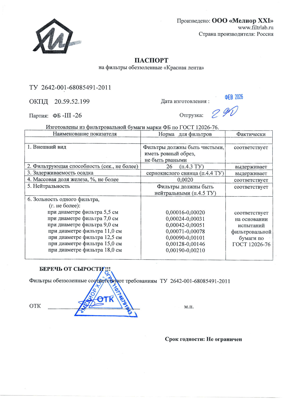- Фильтры обеззоленные. Мелиор ХХI. Сертификат соответствия до 25.09.2026