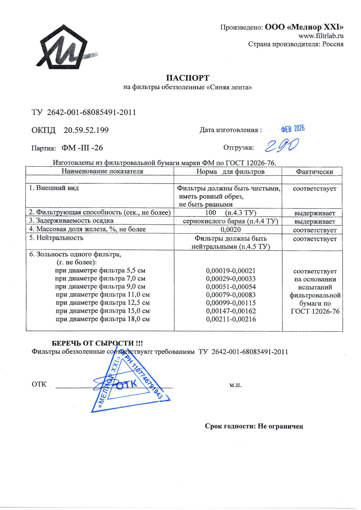 Фильтры обеззоленные предназначены для использования в лабораториях научно-исследовательских организаций, а также в школьных лабораториях для качественного и количественного анализа, а частности для отделения от раствора мелкокристаллических осадков. Фильтр задерживает осадок сернокислого бария.