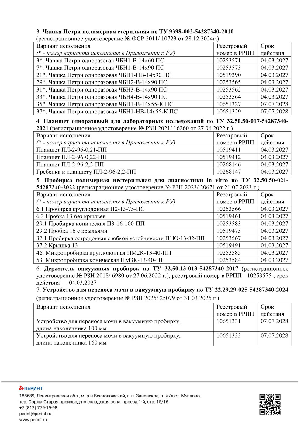 - Реестровые номера из РРПП на Медицинские изделия АО Перинт. Инф. письмо-2