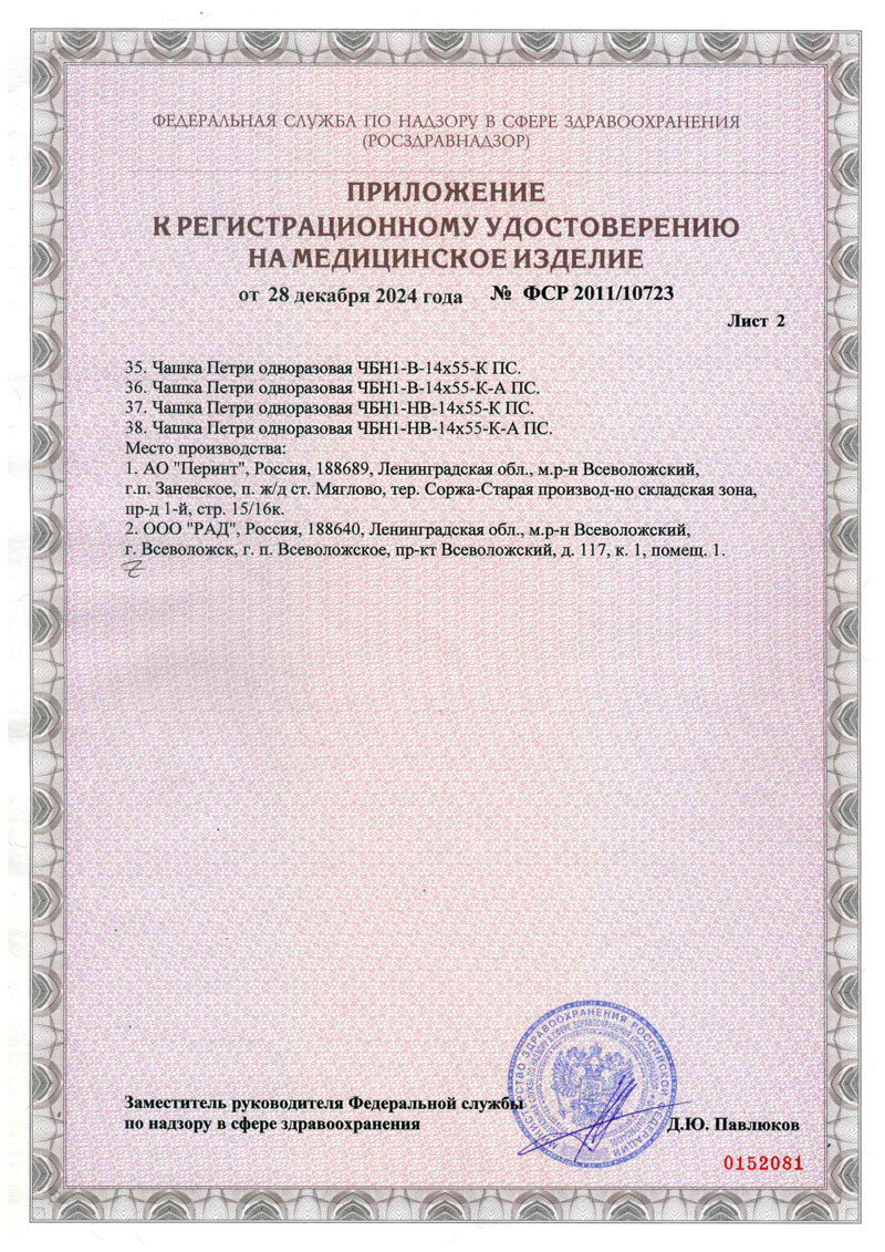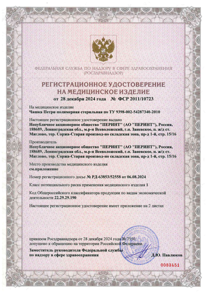 - Чашка Петри полимерная. АО Перинт. Отказное письмо