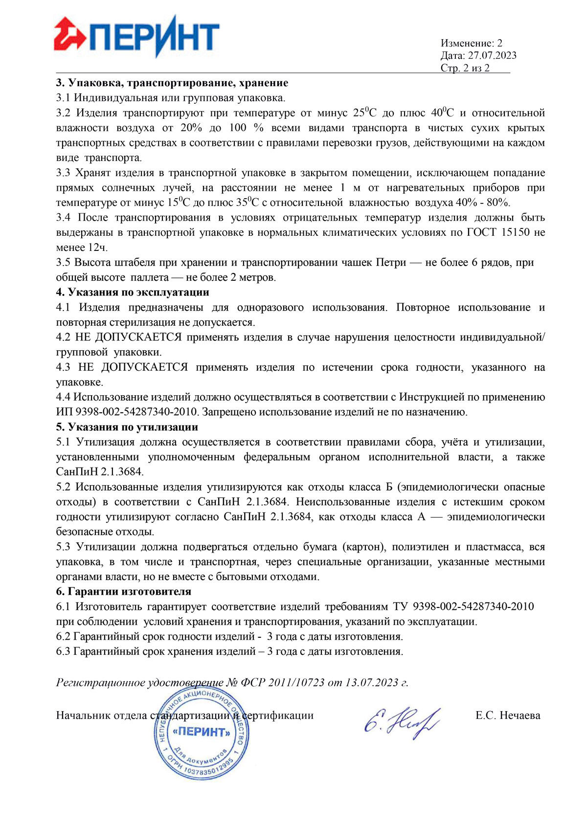 - Чашка Петри полимерная. АО Перинт. Тех. данные 2023-1