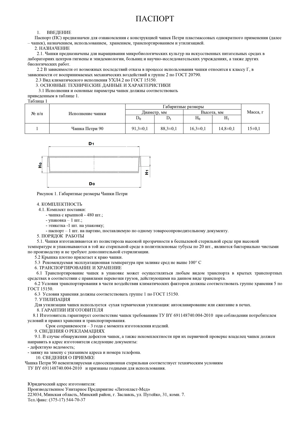 - Изделия мед. полимерные для лабор. исследований. Литопласт-Мед. РУ-1