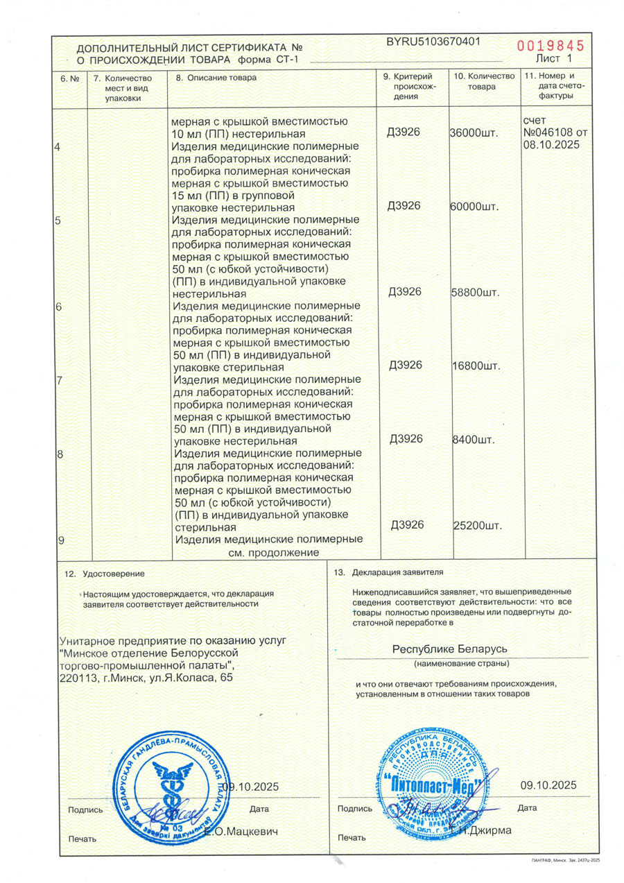 - Изделия мед. полимерные Литопласт-Мед. Сертификат до 15.02.2027