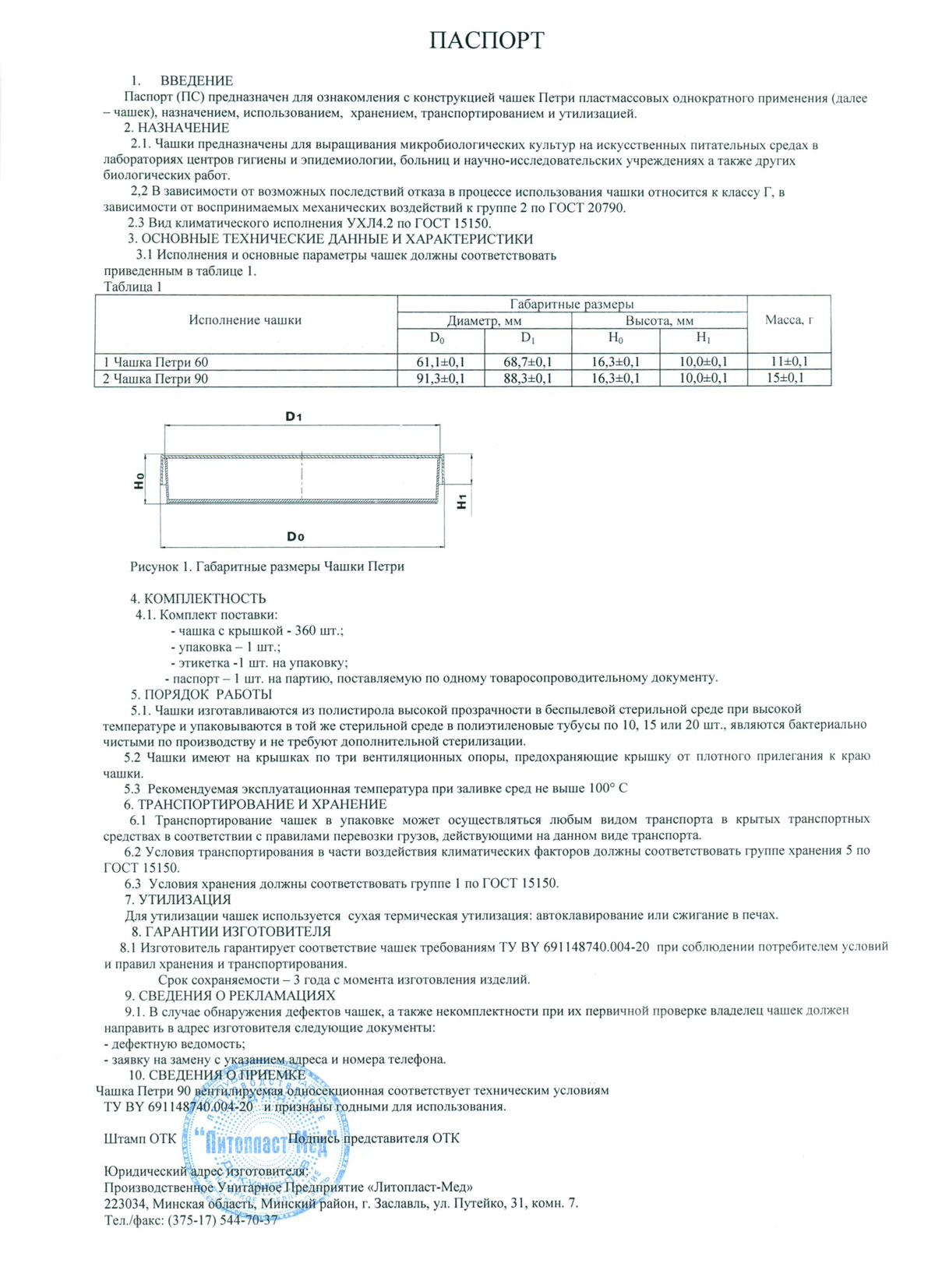 - Литопласт-Чашки-Петри-паспорт-от-производителя