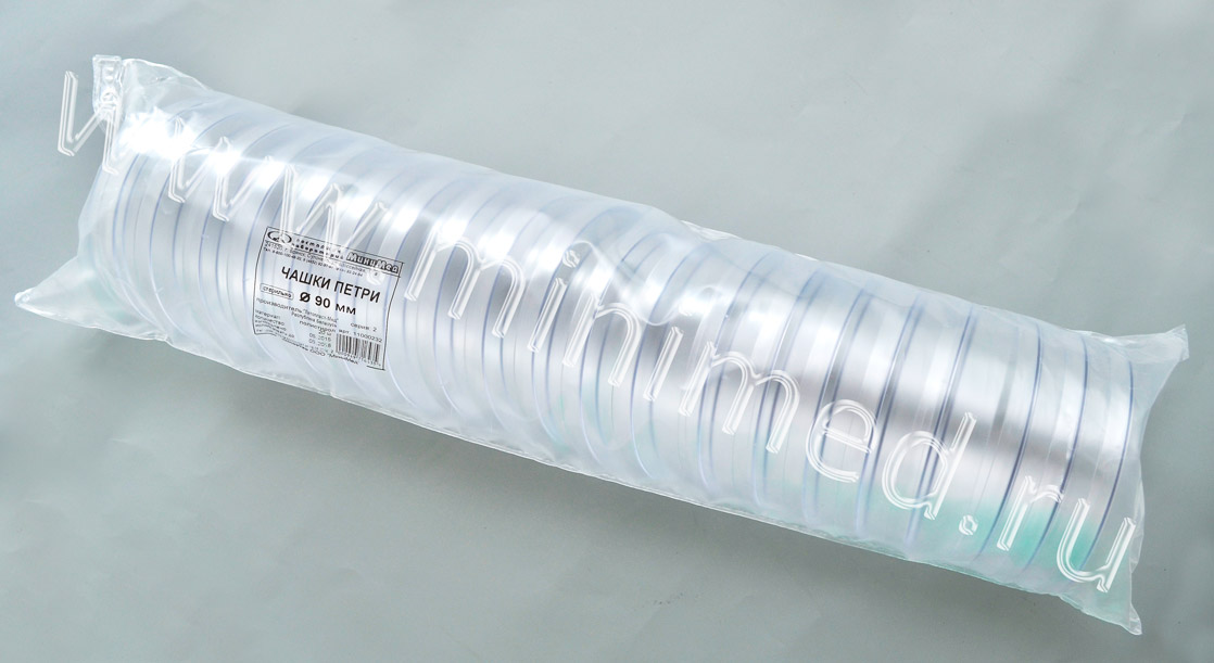 Чашка Петри пластмассовая однократного применения диаметром 90 мм вентилируемая, односекционная в групповой упаковке, стерильная, Литопласт, уп.20 шт
