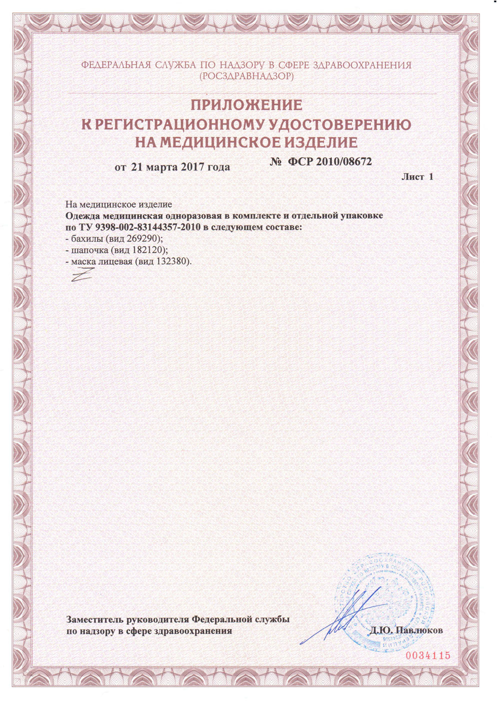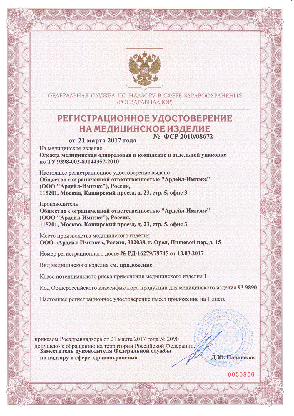 РУ № ФСР 2010/08672 от 21.03.2017 г.