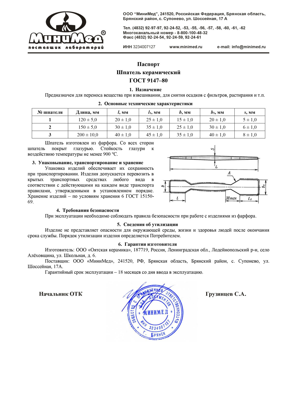 - Шпатель, Ложка, Крышка к тиглю. Паспорт качества от 10.09.2025