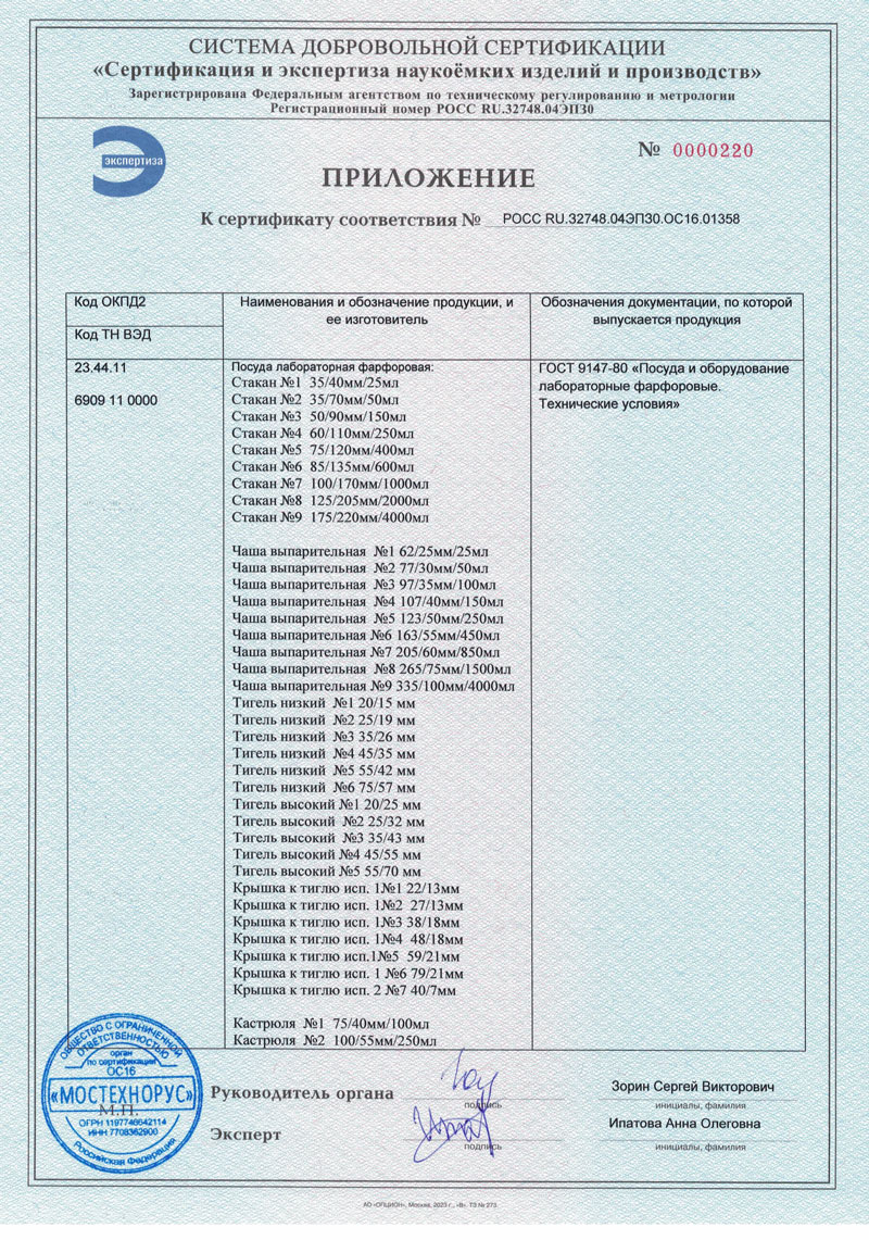 - Посуда лабор. фарфоровая. Оятская керамика. Сертификат до 13.11.2027-1