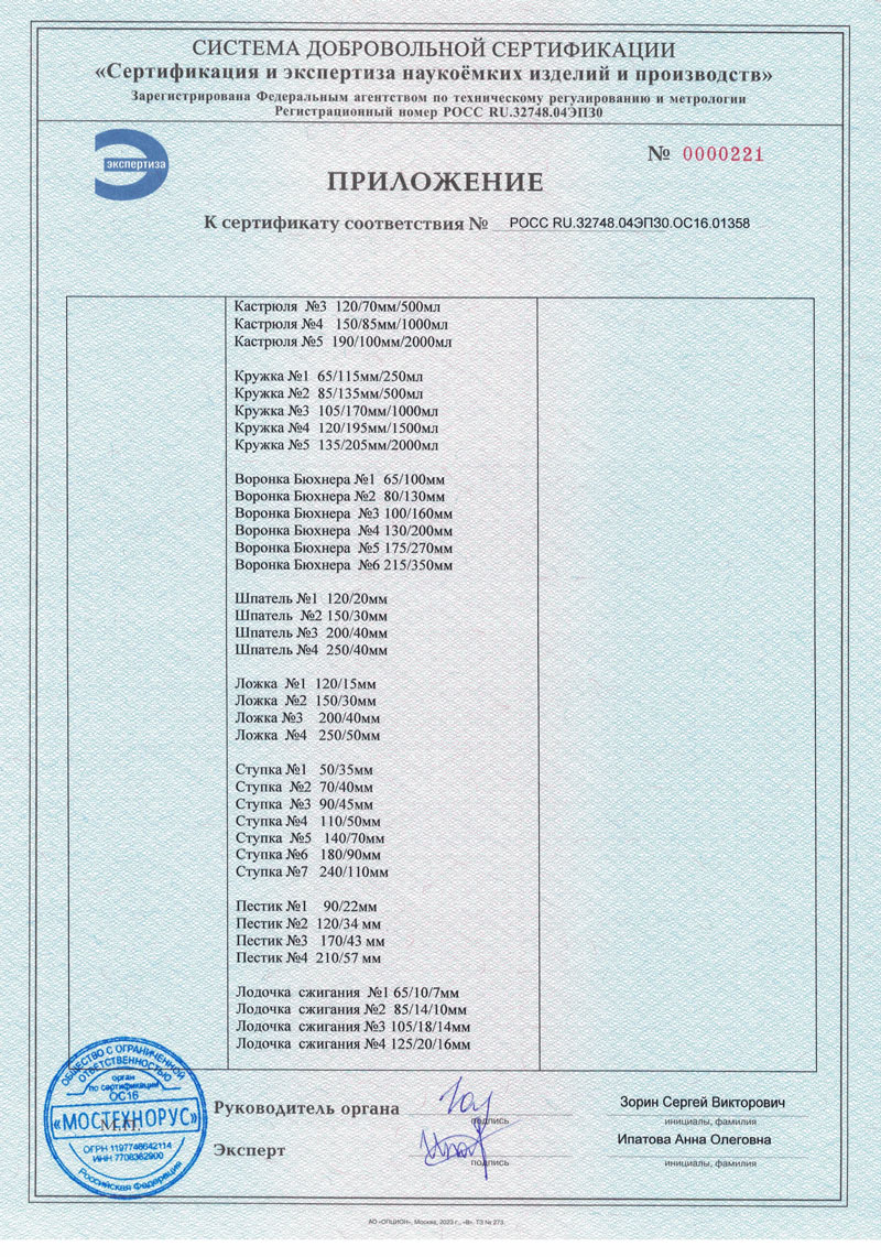 - Посуда лабор. фарфоровая. Оятская керамика. Сертификат до 13.11.2027-2