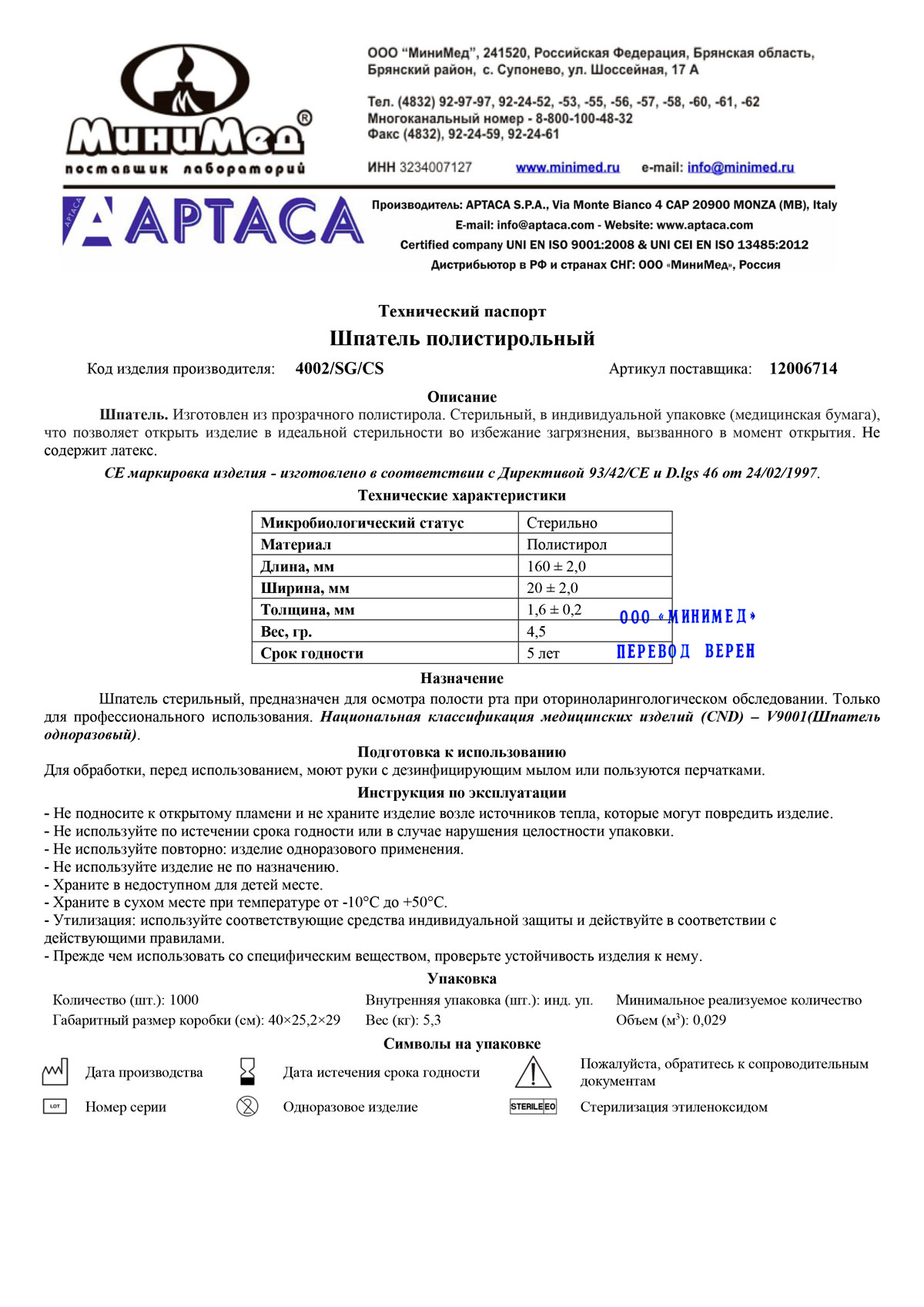 Предназначен для осмотра полости рта при оториноларингологическом обследовании. Шпатель изготовлен из полистирола. На одном из концов шпателя имеется углубление с шероховатой поверхностью для пальца. Индивидуальная упаковка.
