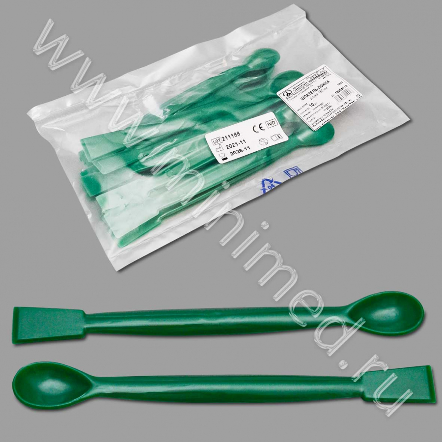 Предназначен для набирания веществ при взвешивании на весах, для снятия осадков с фильтров, растирания и т.п. Нестерилен, изготовлен из ударопрочного полистирола. Цвет шпателя - зеленый. С одной стороны имеет шпатель, с другой - ложку. Диапазон рабочих температур от - 10 до + 70° С