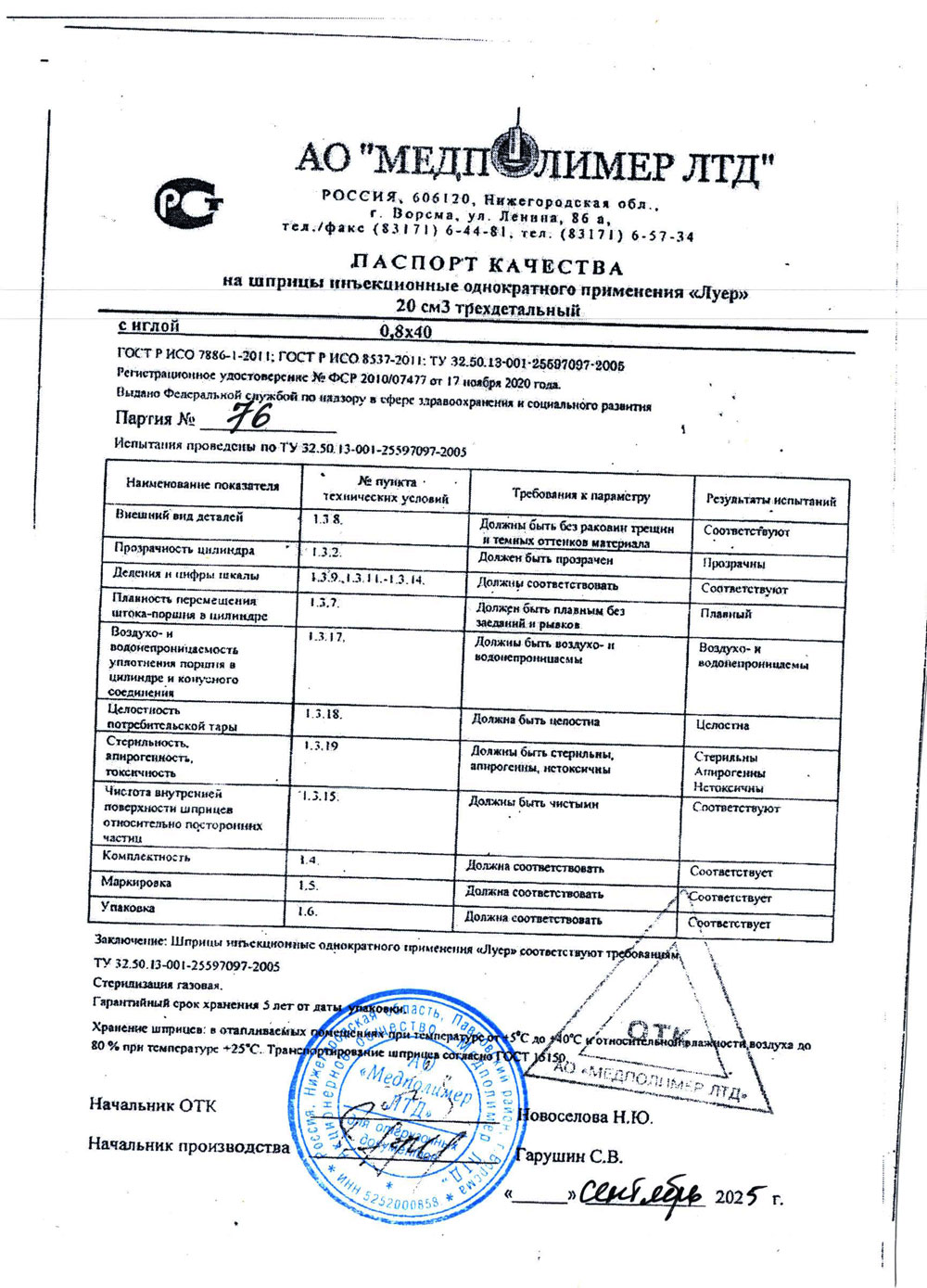 - Шприцы инъекционные однократного применения, стерильные. Медполимер ЛТД. РУ-2