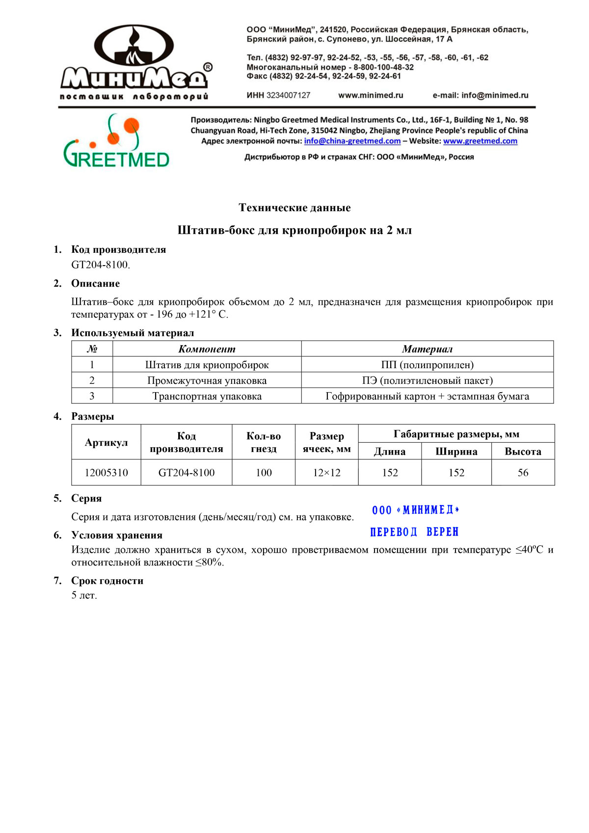 Объем криопробирки........................................ 2 мл