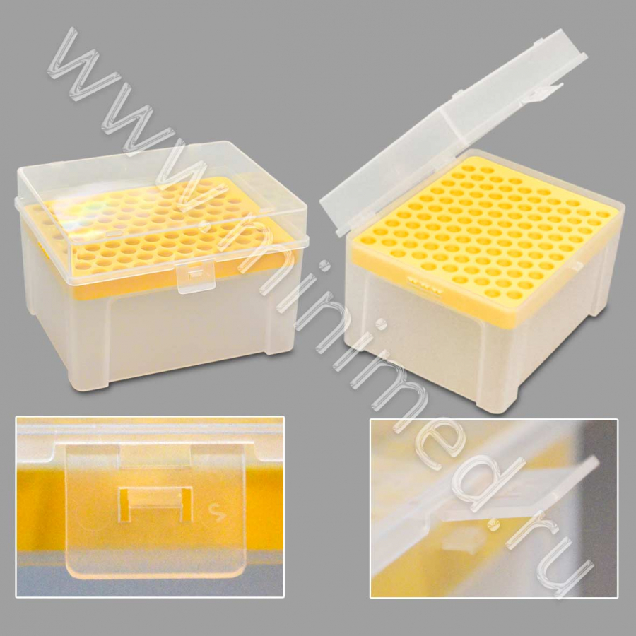 Предназначен для хранения наконечников к дозаторам. Снабжен прозрачной крышкой, предохраняющей наконечники от загрязнения. Изготовлен из полипропилена. Автоклавируется при температуре +121°C. Подходит для наконечников арт. 12001322, 12001387, 12001432, 12001464.