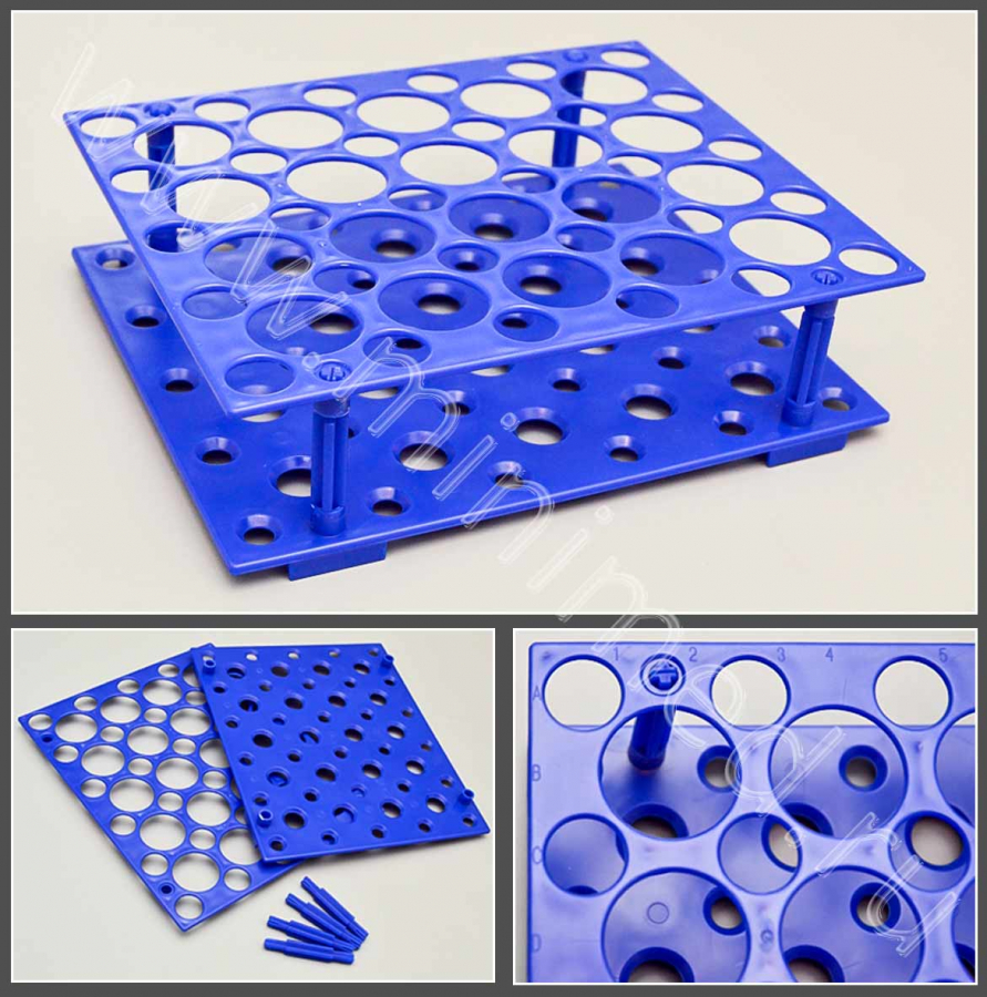 Штатив д/пробирок 15 мл, диам.17 мм*30 гн., 50 мл.д.28 мм*20 гн., ABS, инд.уп./50 шт, голубой