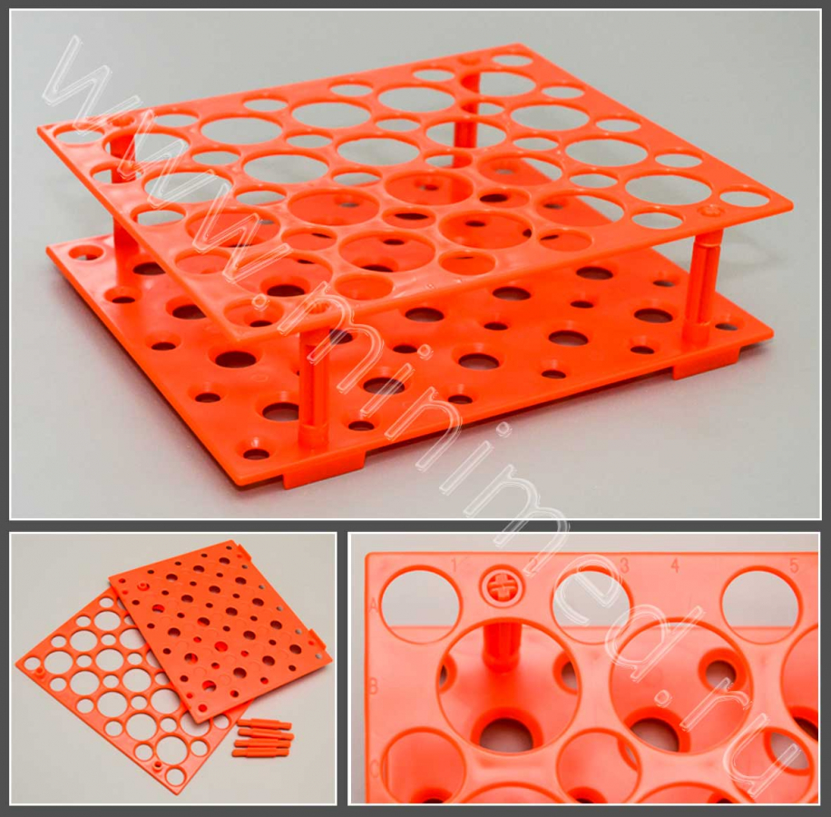Штатив д/пробирок 15 мл,диам.17 мм*30 гн., 50 мл.д.28 мм*20 гн.,ABS, инд.уп./50 шт.,оранжевый