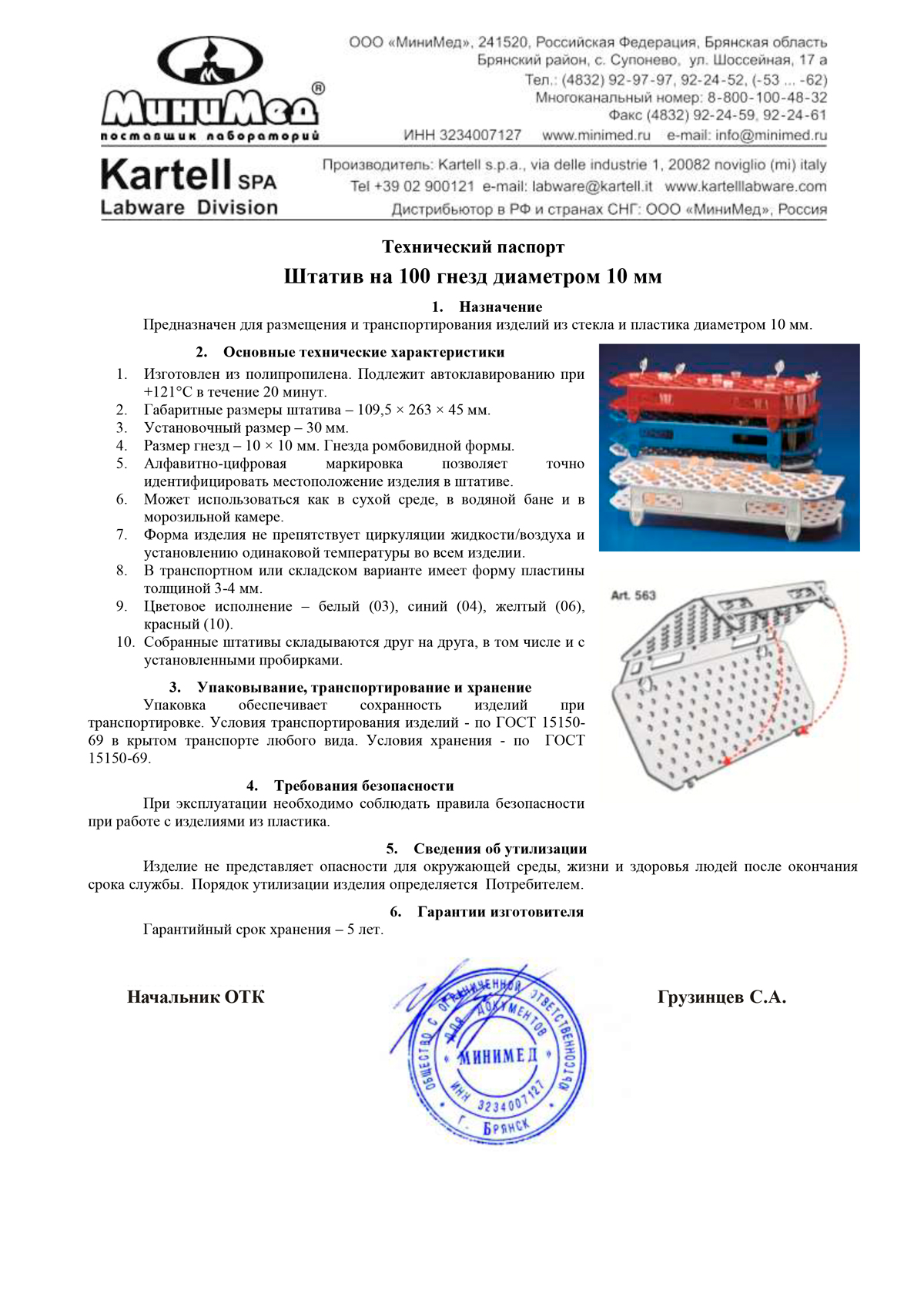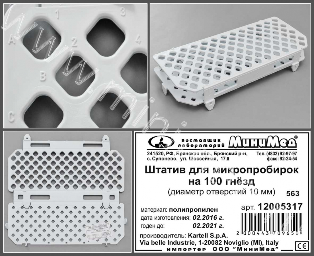 Штатив на100 гнезд, диам.10 мм,п/п, Kartell, шт
