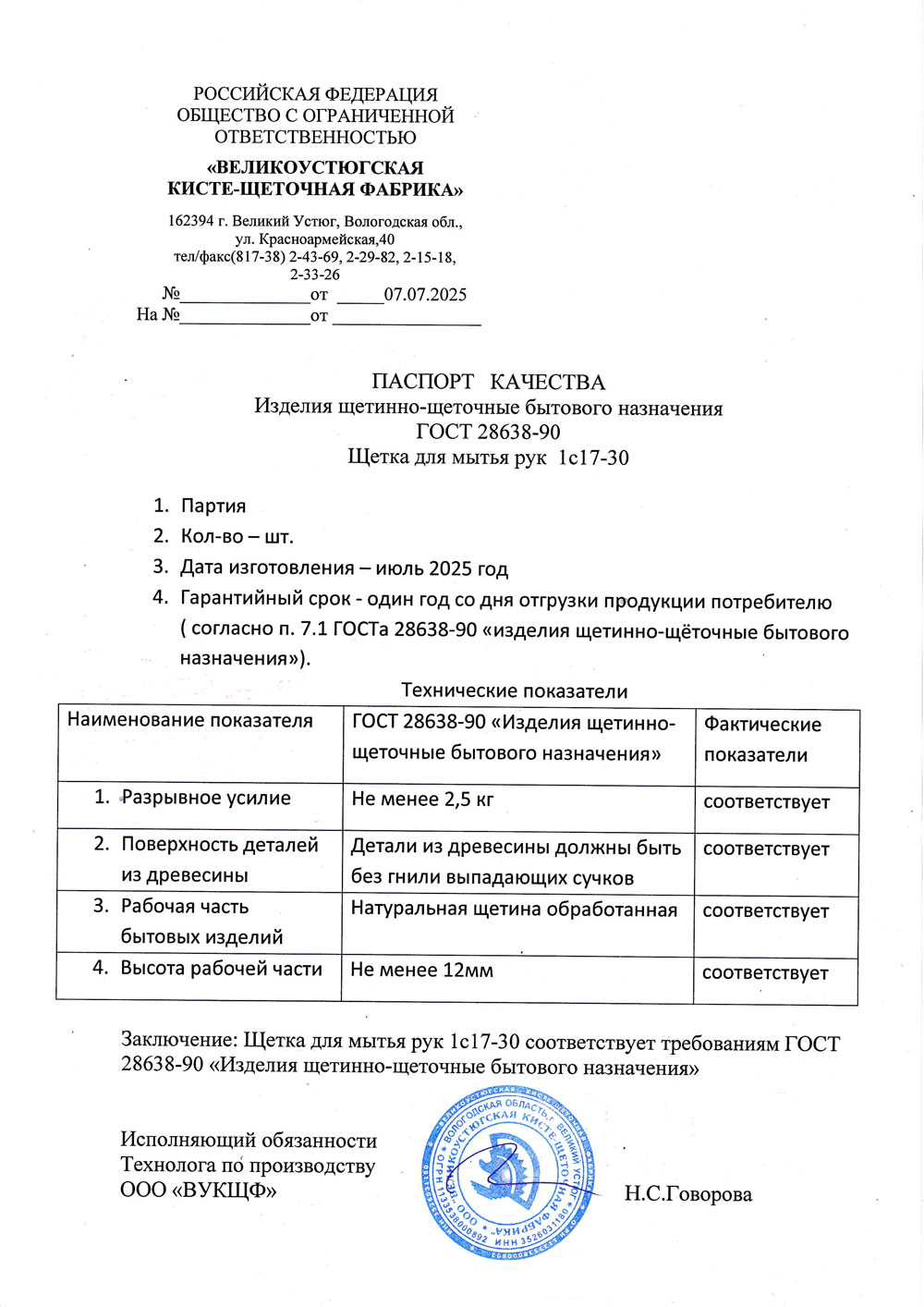 Щётка предназначена для мытья рук. Выполнена на деревянном основании, имеет натуральную (свиную) щетину.