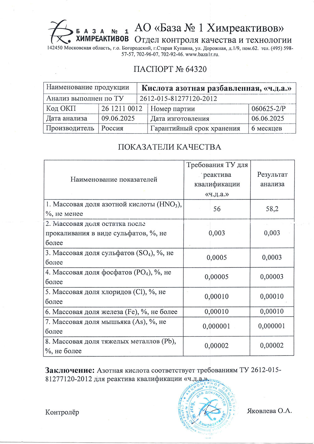 Азотная кислота, чда, 58%, 1,3 кг / 15,6 кг