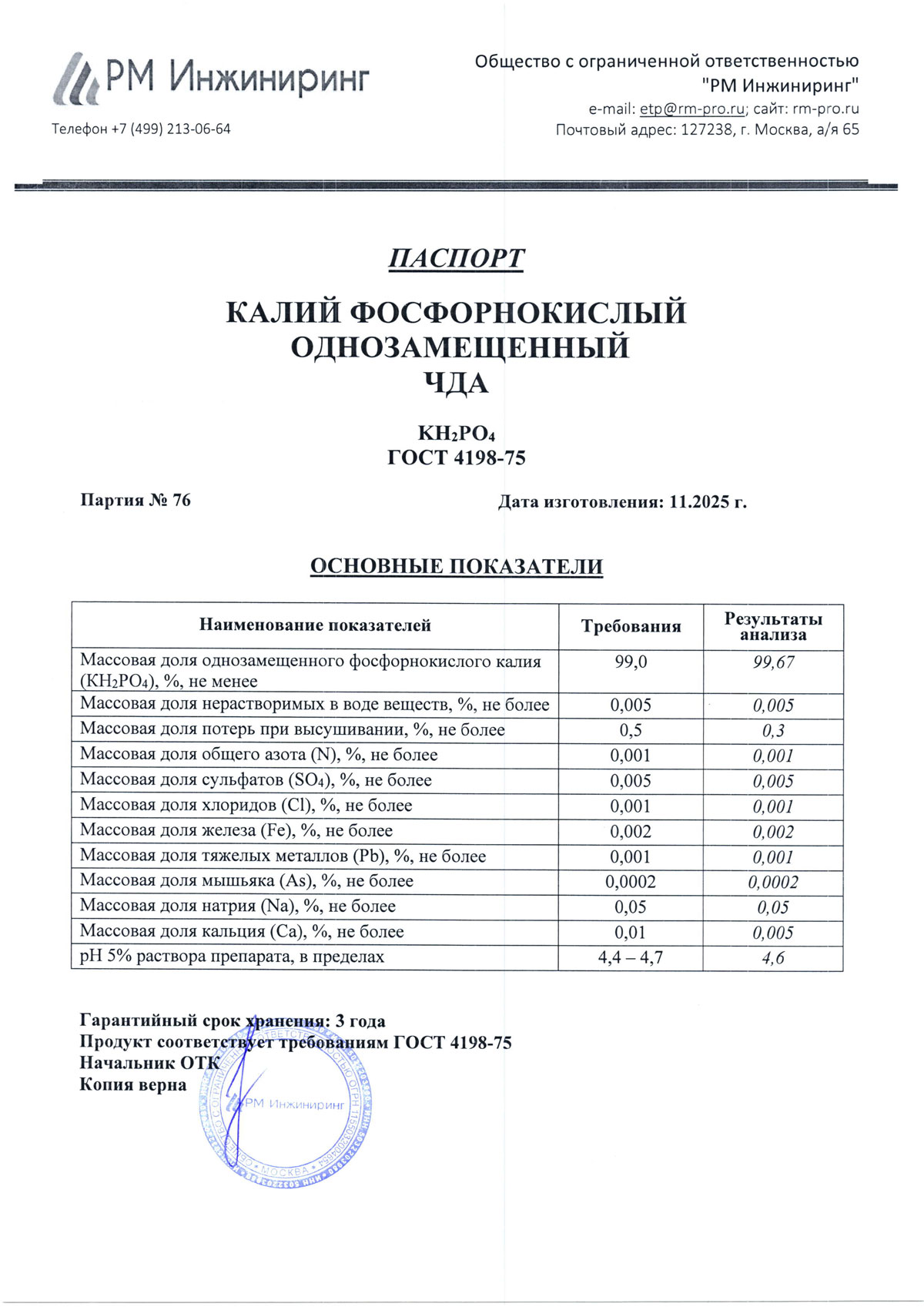 Калий фосфорнокислый 1-зам, чда, 1 кг