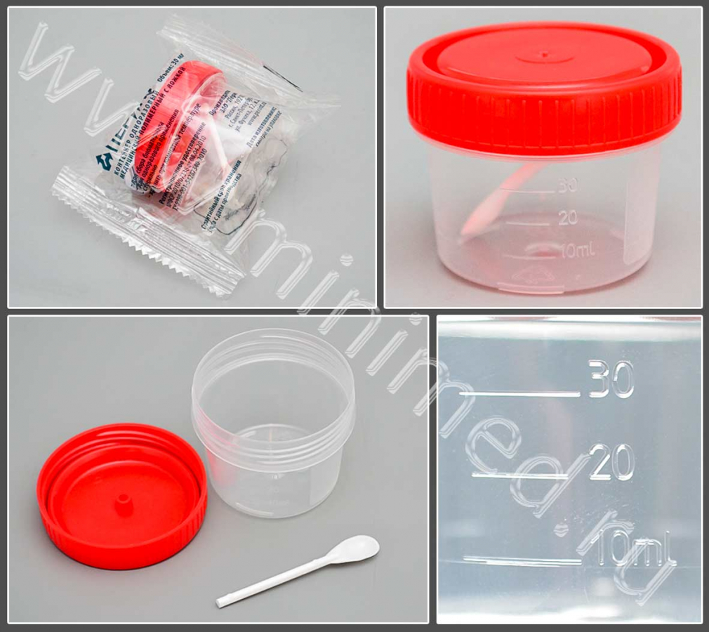 Контейнер с завинчивающейся крышкой обеспечивает полную герметичность при транспортировке биологического материала. Крышка снабжена ложкой. Изготовлен из ультрачистого полипропилена. Имеет градуировку и матовое окошко для записи. Стерильный.