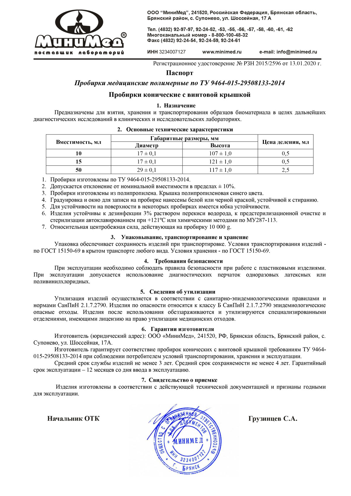 - Пробирки-медицинские-полимерные по ТУ-2014. РУ-1
