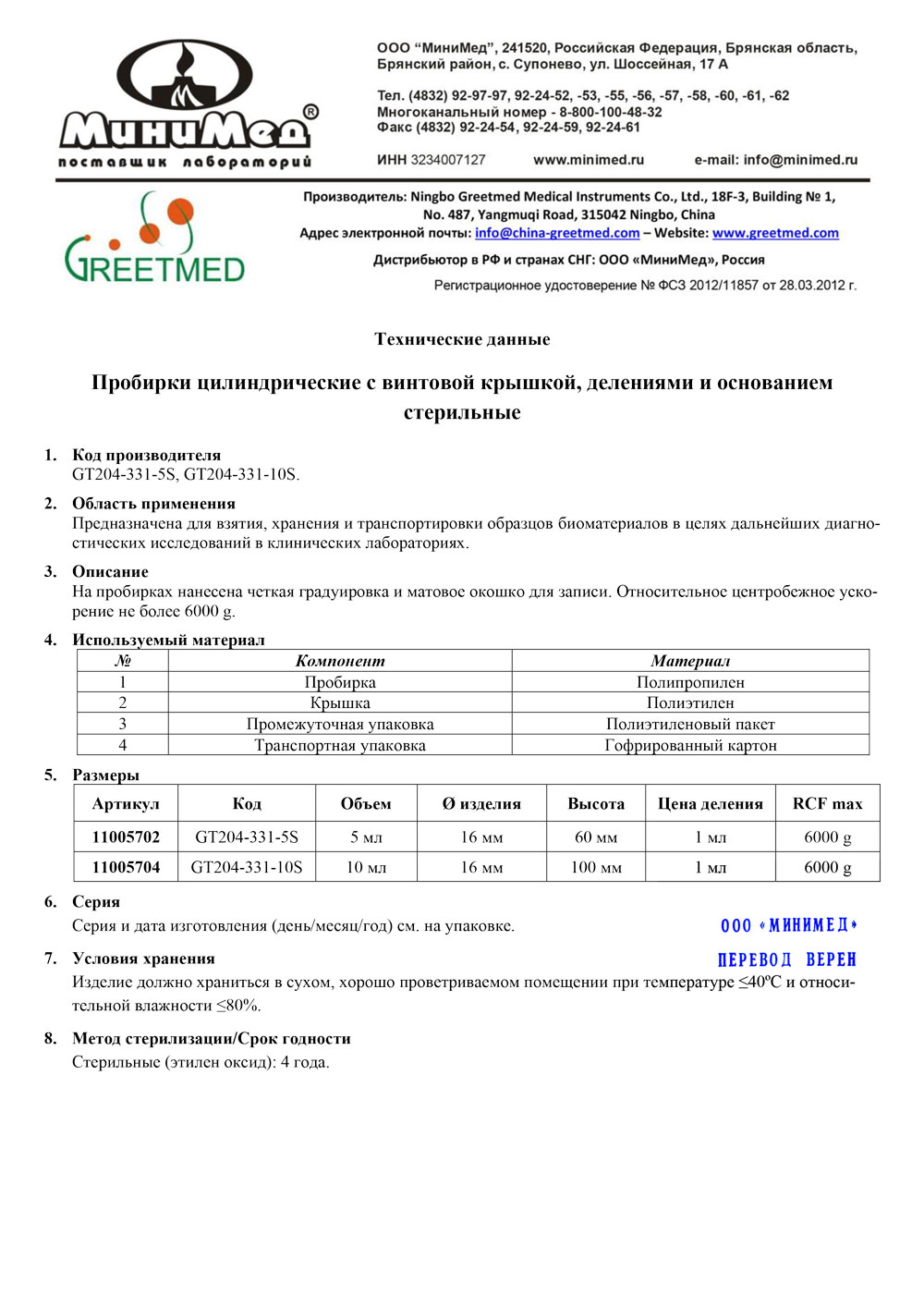 Предназначена для взятия, хранения и транспортировки образцов биоматериалов в целях дальнейших диагностических исследований в клинических лабораториях. Изготовлена из полипропилена, герметично укупоривается винтовой крышкой. На пробирках нанесена четкая градуировка и матовое окошко для записи. Имеют юбку устойчивости. Относительное центробежное ускорение не более 6000 g.