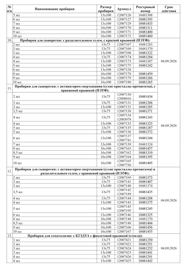 - Реестровые номера вакуумных пробирок ММ в РРПП-5