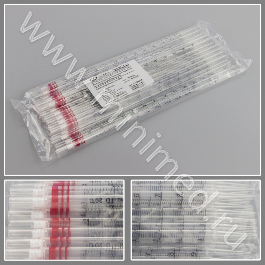 Пипетка серологическая 10 мл, стерильная, уп.25/350 шт, п/с, ТУ 32.50.50-029-29508133-2018, МиниМед