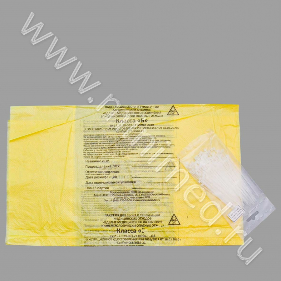 Пакет полиэтиленовый для сбора и утилизации мед. отходов класса Б, желтый, 700*800мм, с информацией, уп.100шт.