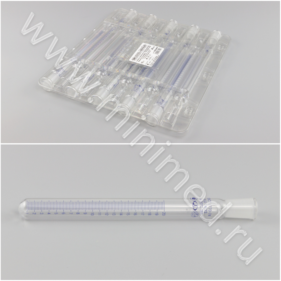 Пробирки медицинские стеклянные МиниМед по ТУ 32.50.50-039-29508133-2023: Пробирка мерная со шлифом ПМ-2-20-14/23, уп.10шт/кор.60 шт