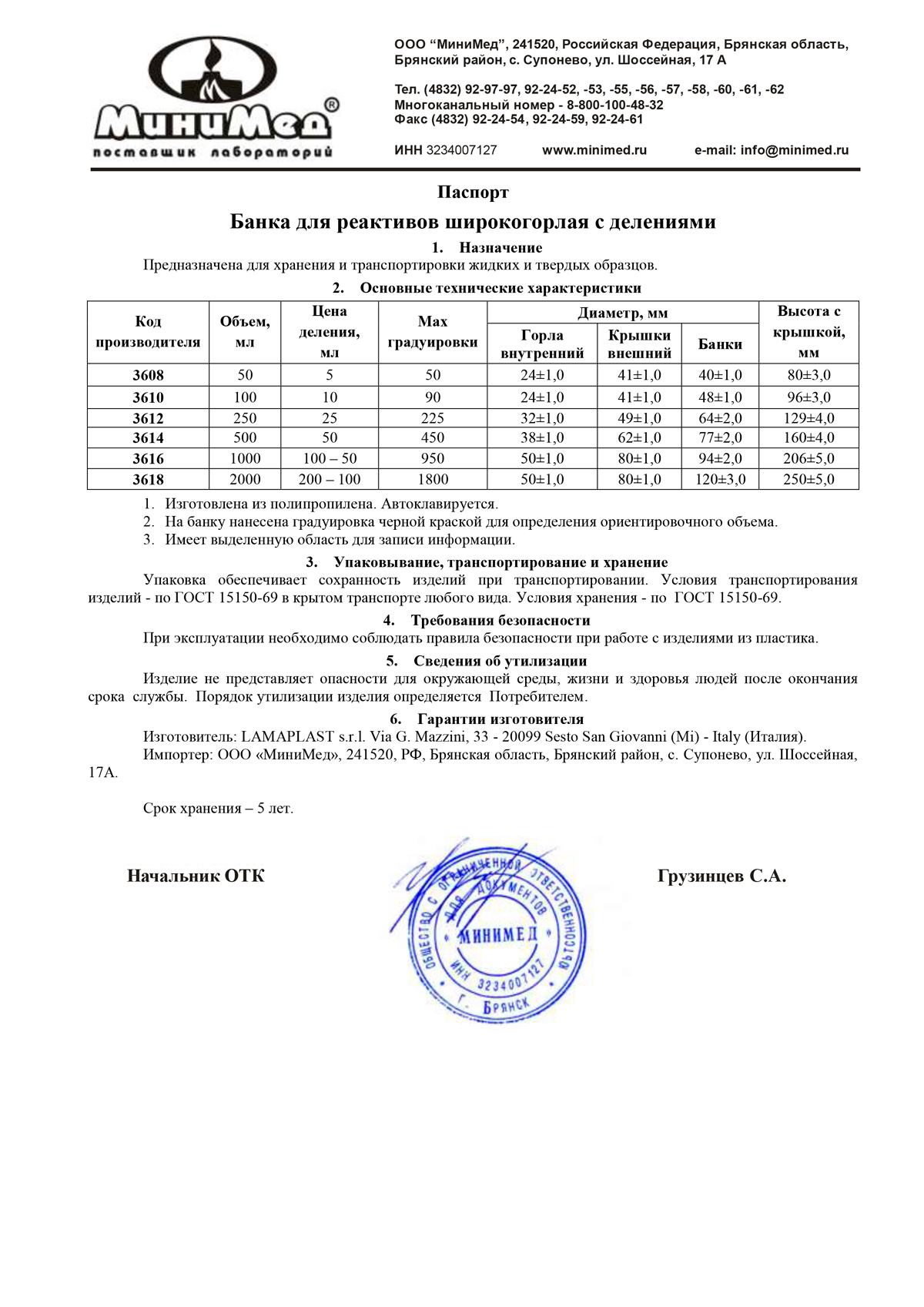 Банка д/реактивов 2 л, с черной град., шир/горл, с крышкой, п/п, LAMAPLAST, шт