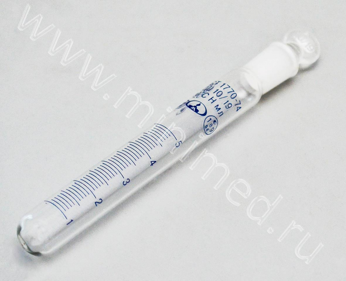 Пробирки медицинские стеклянные МиниМед по ТУ 32.50.50-039-29508133-2023: Пробирка мерная со шлифом и пробкой ПМ-2-5-10/19, уп.10 шт/кор.60шт