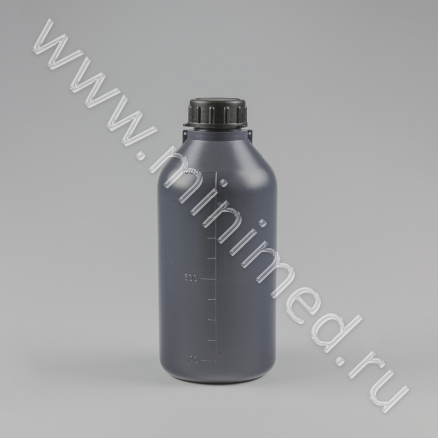 Бутылка градуированная 1000 мл, с узким горлом, серая, с крышкой, ПЭВД, LAMAPLAST, шт