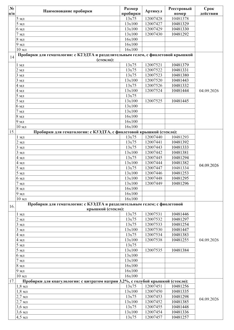 - Реестровые номера вакуумных пробирок ММ в РРПП-5
