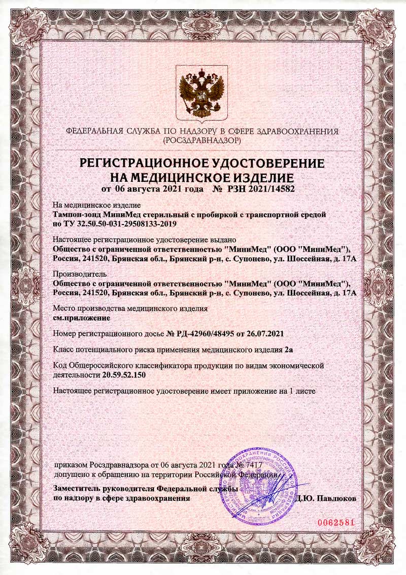РУ № РЗН 2021/14582 от 06.08.2021 г.